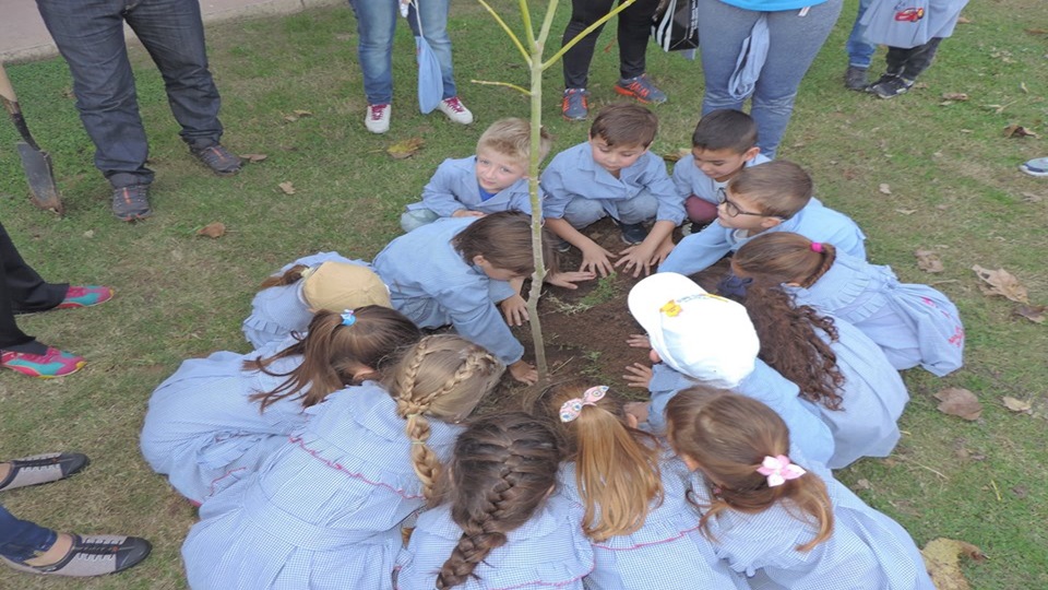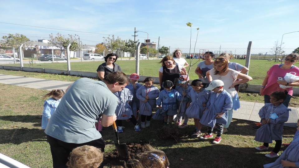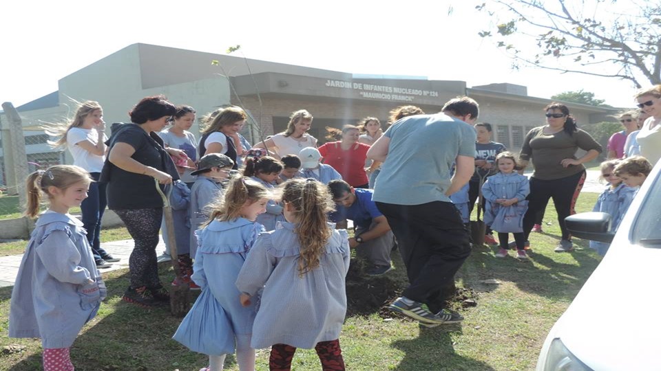Esa colaboración se traduce obsequiando 17 árboles acer negundo y 14 arbustos besitos que fueron plantados junto a los chicos, sus papás y las seños en el predio del jardín.