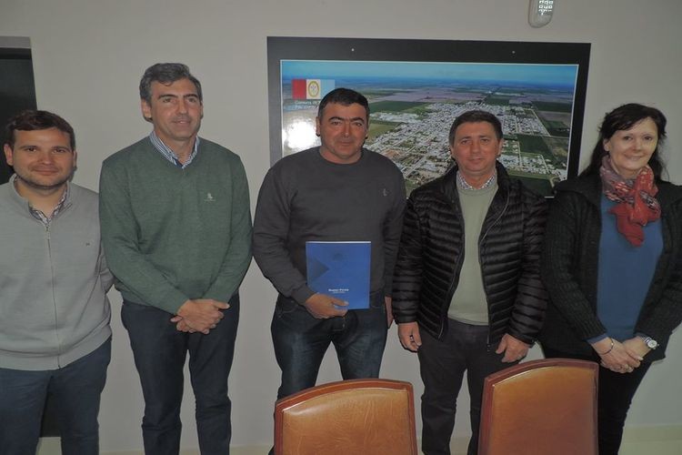 El presidente comunal, Javier Enrico; el vicepresidente Damián Franzen y la tesorera Graciela Rossi, recibieron al Senador Provincial por el Departamento Las Colonias, CPN Rubén Pirola y a representantes de instituciones intermedias, entre ellas.
