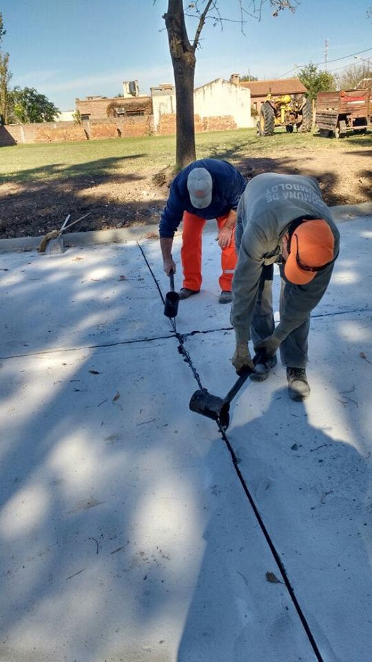 Se continúa con la colocación de brea en las juntas de pavimentación.