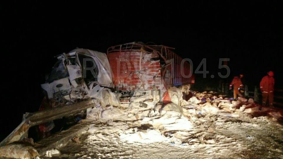 Alrededor de las 20.30 hs de anoche, un nuevo accidente se produjo sobre la Ruta 10. El incidente fue entre Pilar y Nuevo Torino, donde dos camiones impactaron de frente: uno de ellos trasladaba animales y otro harina.