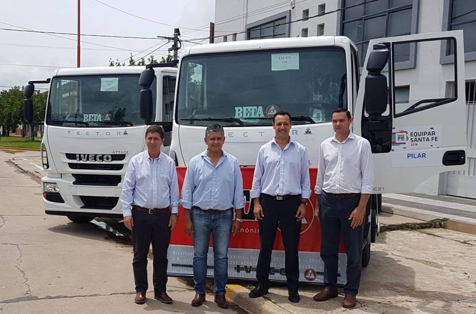 A través del Plan Equipar la comuna de Pilar amplió el equipamiento del corralón comunal adquiriendo 2 camiones 0km marca Iveco para destinarlos a obras y brindar servicios públicos, que se suman a los ya adquiridos por el mismo programa: 1 retroexcavadora John Deer y 1 camión marca Volkswagen.