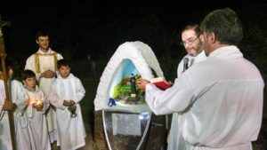 “Creo que es un lugar oportuno y es un hermoso lugar que con la naturaleza, un espacio para la oración, creo que es muy oportuno el lugar y la fecha también; estamos en Pascua, asi que mejor que celebrar en este tiempo la vida, la resurrección con esta fiesta de la entronización de nuestro santo, el santo argentino”.
