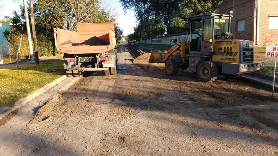 La comuna de Progreso se encuentra realizando obras de pavimentación urbano en calle 9 de Julio entre San Martín y J. M. Crespo.
