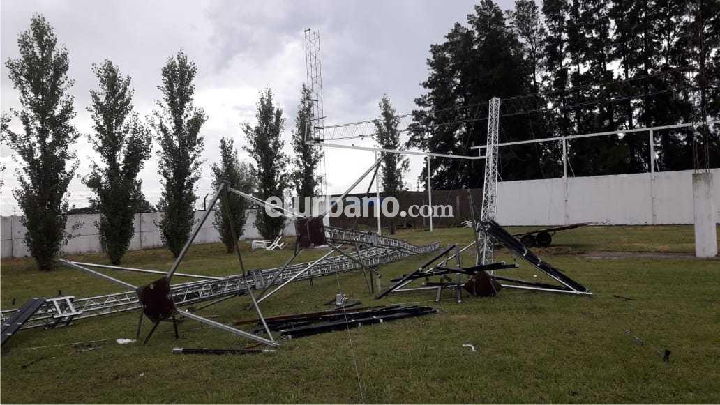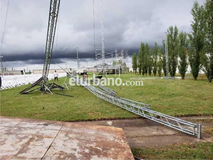 Asimismo detallaron “como ven en las fotos, tumbó la estructura del tablero gigante, los estacionamientos están con agua, algunas luminarias se rompieron por las piedras, no se puede ingresar con camiones para bajar el equipamiento de sonido y pantallas led y no hay conexión a internet”.