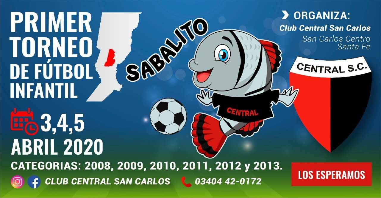 El Club Central San Carlos organiza la Primera Edición del Torneo Infantil de Fútbol “Sabalito de San Carlos”, que se llevará a cabo durante los días viernes 3, sábado 4 y domingo 5 de abril de 2020, en el polideportivo ubicado en la ciudad de San Carlos Centro, provincia de Santa Fe.
