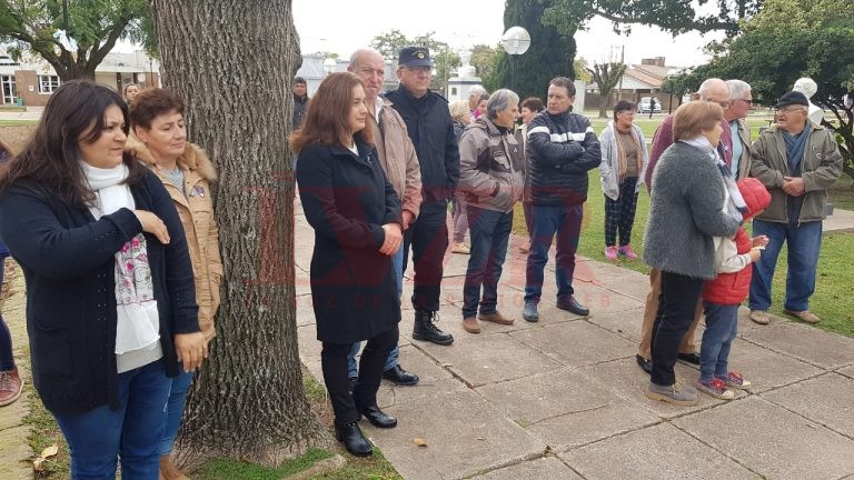 El acto comenzó a las 10:15 de la mañana donde las instituciones intermedias se congregaron frente al escenario montado en la en la plaza pública.