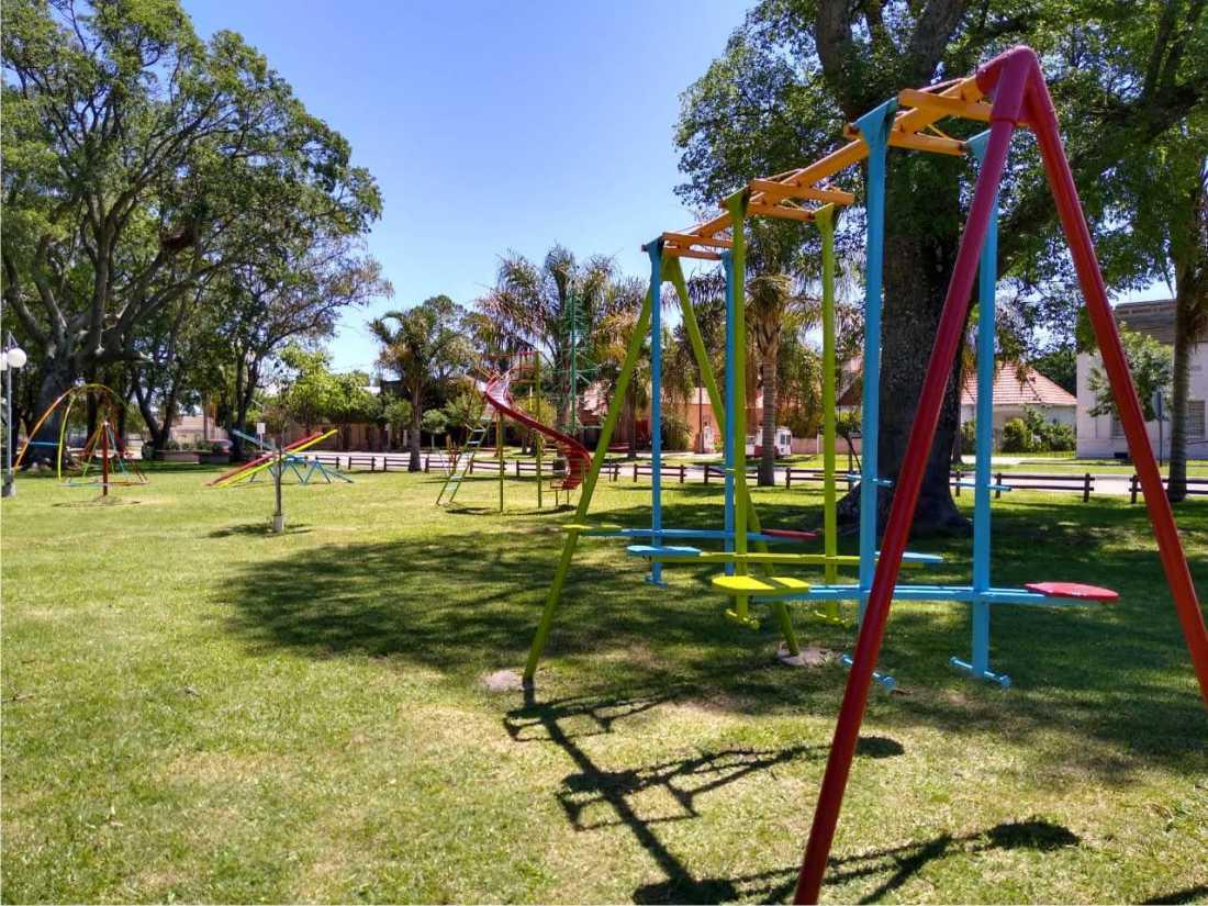 Ampliando la información brindada días atrás, se continúan restaurando los juegos infantiles y embelleciendo el sector norte de la Plaza “27 de Septiembre” con la incorporación de nuevas hamacas destinadas a la primera infancia y que se pueden compartir entre padres e hijos.