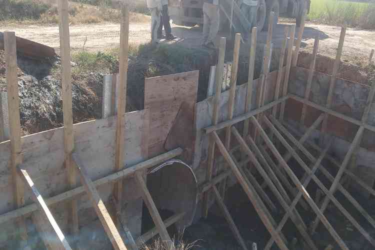 La Comuna de San Carlos Sud en un trabajo coordinado con el Comité de Cuenca Arroyo Malaquias – Los Troncos se encuentra construyendo los cabezales de hormigón para las alcantarillas ubicadas en lo que es la continuación de calle López y Planes, y su intersección con el camino rural número 18, al este de la zona urbana de la localidad.