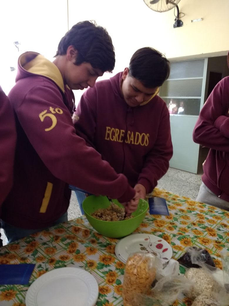 Otra de las postas fue *Cocina sin cocina*, donde crearon a su gusto barras de cereales sin conservantes ni aditivos, endulzadas con miel y elaboradas con cereales, avena, semillas, frutos secos y coco. Degustaron también frutos frescos en fondue de chocolate.