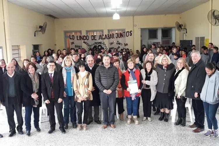 La ministra de Educación Claudia Balagué entregó a representantes de la cooperadora del Jardín recibieron la resolución de aceptación de parte del Ministerio de Educación de la donación del terreno donde se erige el establecimiento, cedido a la provincia por la cooperadora.