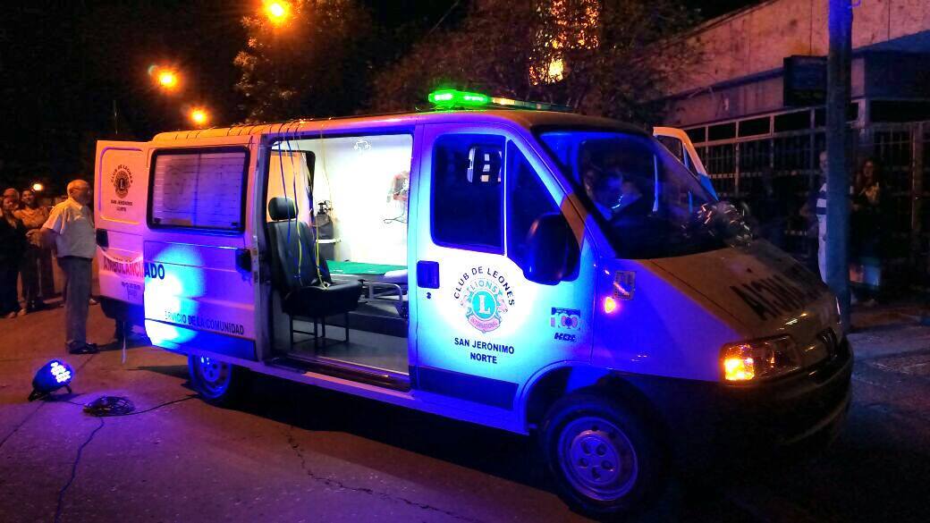 Esta ambulancia fue adquirida por la institución después de varios beneficios y contribuciones de la localidad de San Jerónimo Norte a través de la compra de canelones y del bono contribución.