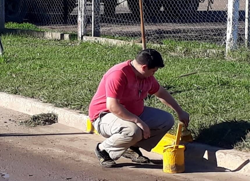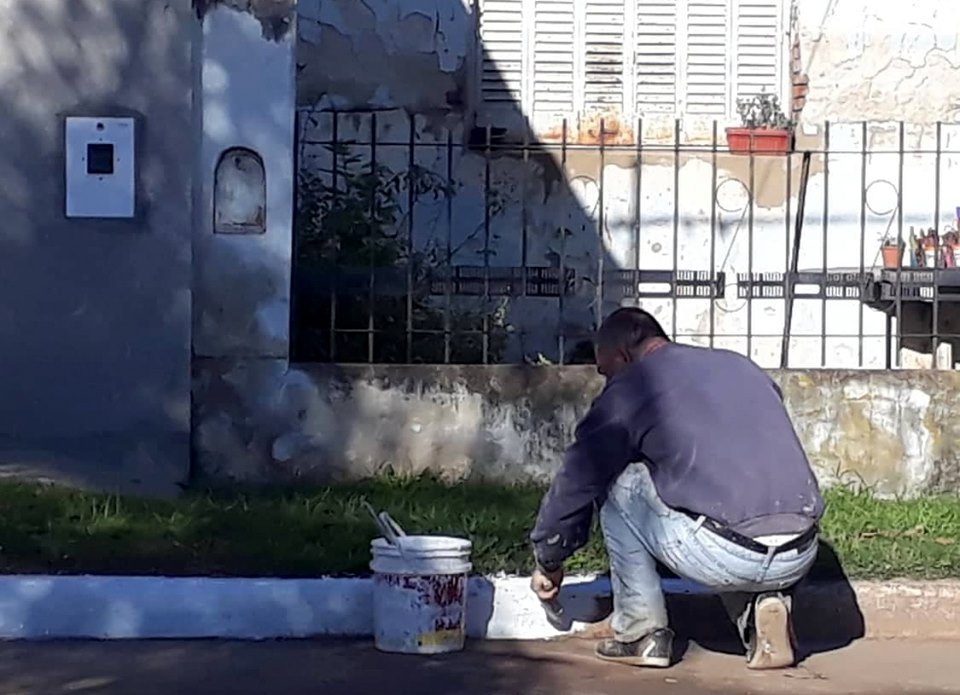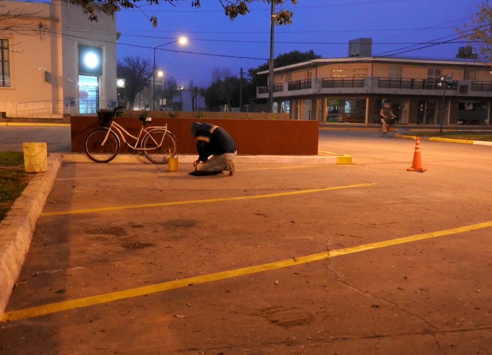 Personal comunal está realizando trabajos de pintura en cordones y dársenas de estacionamiento.