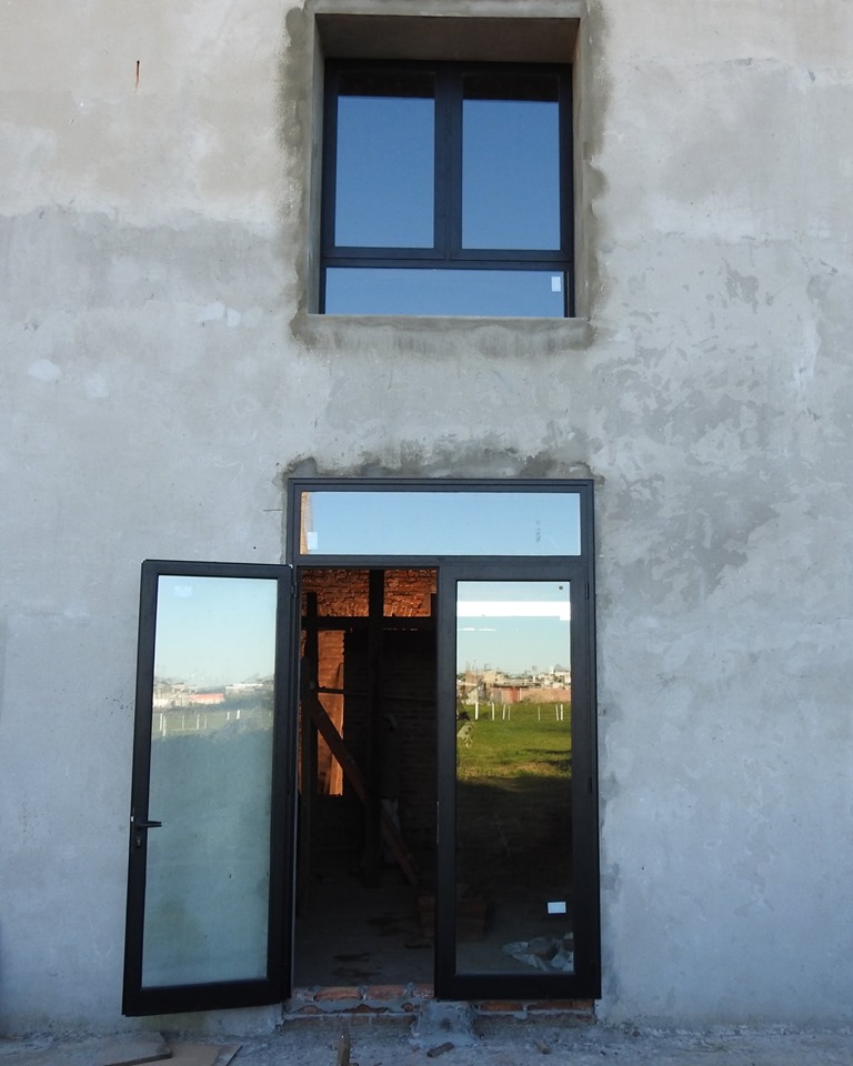 Las obras que se llevan a cabo la colocación de las ventanas y puertas en el edificio logrando así el cerramiento total y se está ejecutando sellado de junta en la parte superior de la chimenea para completar su reparación.