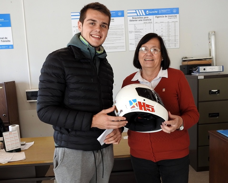 Desde la comuna continúan entregando cascos reglamentarios a los jóvenes que han tramitado por primera vez su licencia de conducir motovehículos.