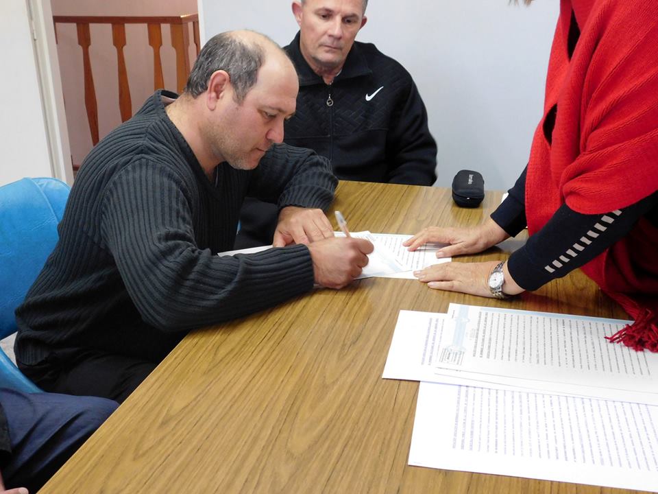 Carlos Volpato y María Florencia Piñero, autoridades comunales junto a Diego Claussen y Julio Yossen, autoridades de la Asociación Bomberos Voluntarios de SJN firmaron ante la Escribana Pública la transferencia de la propiedad que posibilita a la Comuna disponer del bien y comenzar así a realizar las obras y gestiones necesarias sobre el mismo para ponerlo en condiciones óptimas, avances que iremos informando a la comunidad.