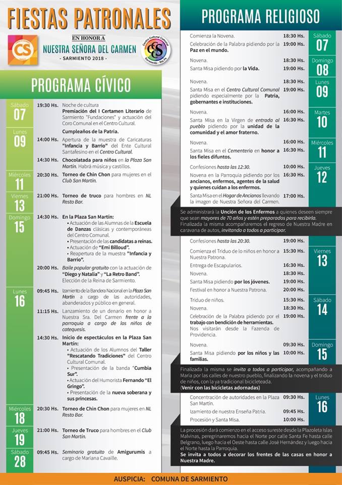 El resto de las actividades en el Cronograma Religioso y Cívico que publicamos a continuación: