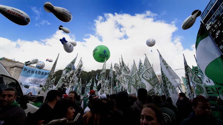 Ante el imponente escenario montado sobre la avenida Paseo Colón, frente al Monumento del Trabajador, las cinco centrales obreras mostraron unidad en una jornada de protesta para reclamar contra las políticas del gobierno nacional. Los organizadores estiman que participaronunas 350 mil personas.