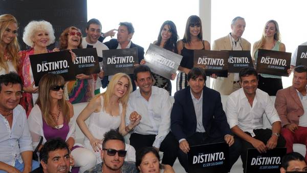 «Vení, vení, a mí no me da miedo abrazarte”, bromeó Sergio Massa cuando se acercó Fátima Florez. Enseguida se sumaron Nito Artaza y Miguel Angel Cherruti, y luego Diego Pérez, Carmen Barbieri, Carlín Calvo, Zulma Faiad y Nazarena Vélez. Rodeado de artistas que protagonizan obras en la temporada marplatense, el diputado del Frente Renovador promovió una movida solidaria y aprovechó para anunciar que el 7 de febrero lanzará su candidatura presidencial en lugar a definir.