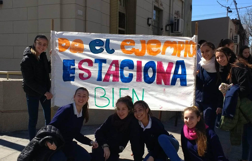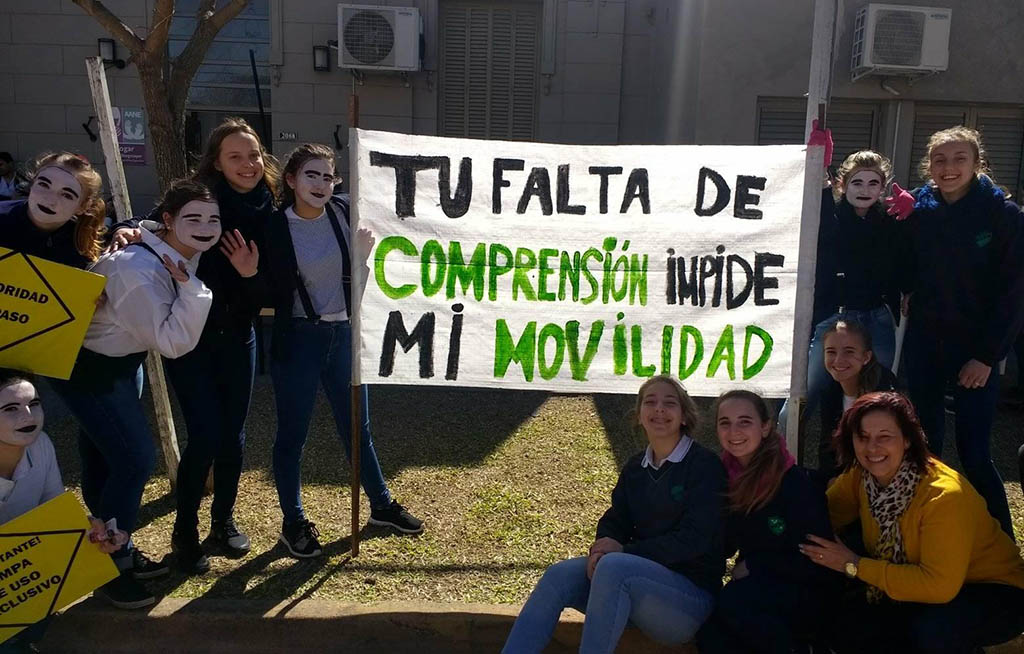 Estudiantes del Colegio San José y personal del Hogar Lilia Stegmayer, que pertenece a la Asociación Ayuda Niños Especiales, desarrollaron una campaña con el objetivo que respetemos los lugares reservados para que estacionen o circulen personas con discapacidad.