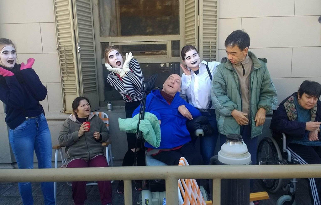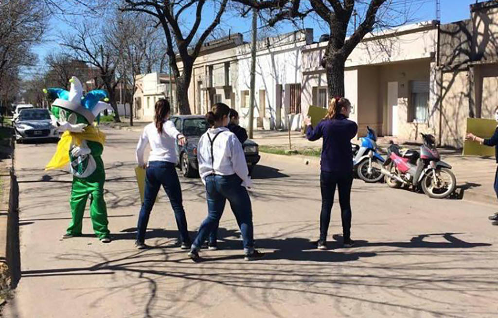 A tal efecto realizaron pasacalles, repartieron volantes y usaron carteles alusivos. Además acompañados por los mimos dialogaron con la gente que circulaba por la zona de 25 de Mayo y Saavedra.