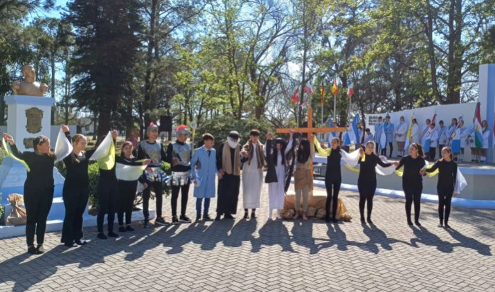Comenzaron con el acto cívico en la plaza Domingo Faustino Sarmiento, en honor a Nuestra Señora de