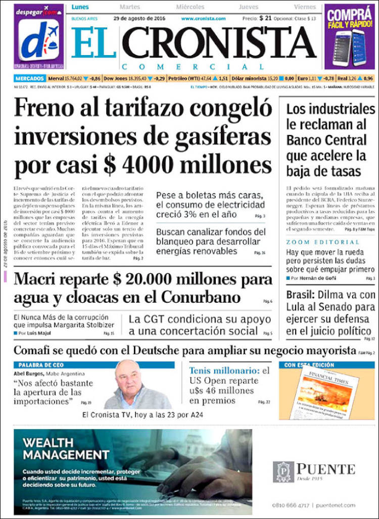 Como cada día te acercamos las tapas de los diarios más relevantes de la región y el país para que puedas arrancar el día con una mirada profunda y completa de lo que publica la prensa escrita.