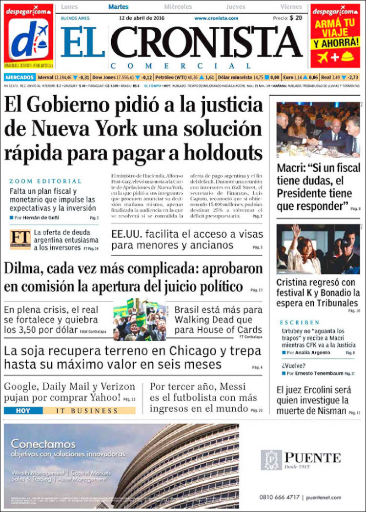 Como cada día te acercamos las tapas de los diarios más relevantes de la región y el país para que puedas arrancar el día con una mirada profunda y completa de lo que publica la prensa escrita.