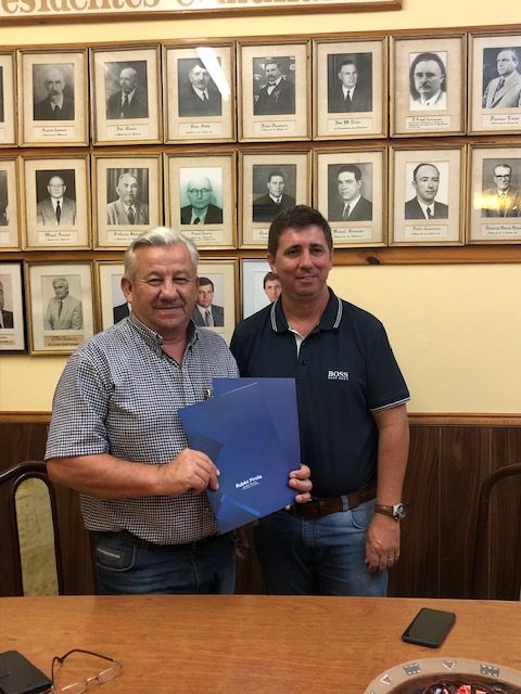 Allí junto a Carlos Schenell, presidente comunal de la localidad, recibieron al Presidente del Club Mariano Moreno para efectivizar un aporte que servirá para refacciones edilicias.